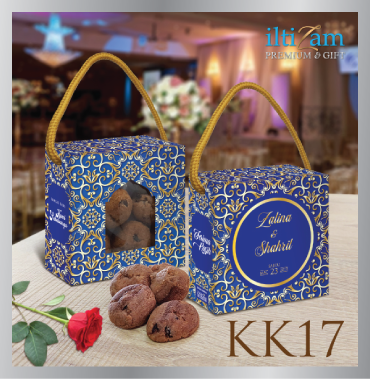 Beri kenangan manis kepada tetamu dengan doorgift kahwin biskut cip coklat yang lazat dan dibungkus dalam kotak mewah. Setiap kotak boleh custom nama pengantin, tajuk majlis, dan tarikh majlis melalui proses hotstamping berkilau yang elegan.