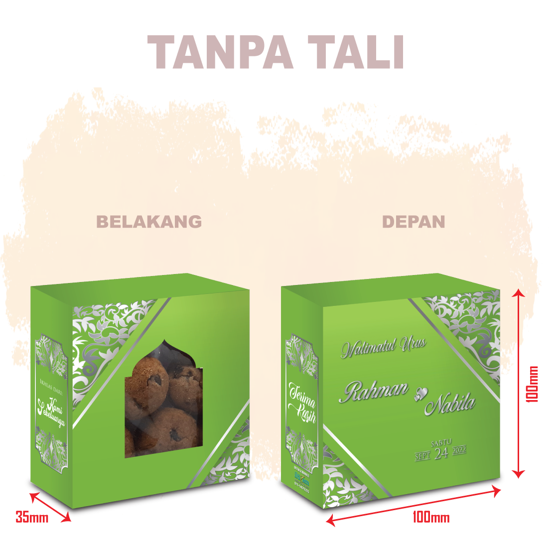 Beri kenangan manis kepada tetamu dengan doorgift kahwin biskut cip coklat yang lazat dan dibungkus dalam kotak mewah. Setiap kotak boleh custom nama pengantin, tajuk majlis, dan tarikh majlis melalui proses hotstamping berkilau yang elegan.